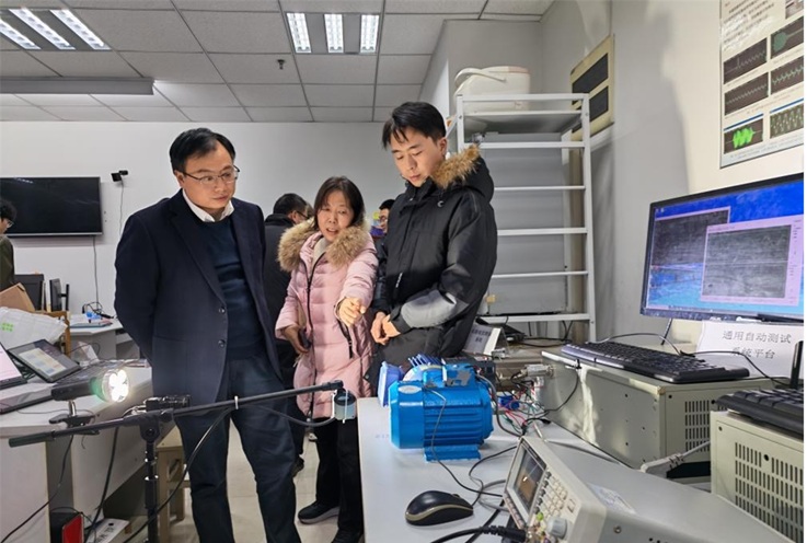 高翠云及团队成员详细汇报了机器视觉技术在建筑健康检测、工业自动化等领域的应用研究进展、现有成果及应用前景,现场演示了基于机器视觉的电机类设备的振动测量以及混凝土横梁应力位移检测实验数据。王佐才充分肯定了团队的科研成果,指出要搭建常态化合作平台,推动土木学院的工程需求与电信学院的技术优势精准对接,围绕关键技术攻关、人才联合培养、科研项目申报等方面深化合作,形成优势互补、协同创新的良好格局。
