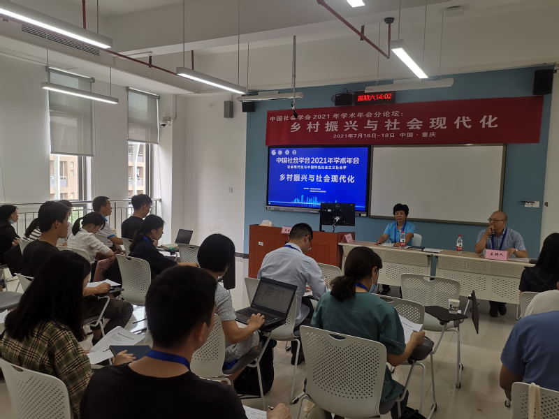 本网讯 7月17日,由beats365公共管理学院、安徽省社会学会联合承办的中国社会学会2021年学术年会“乡村振兴与社会现代化”分论坛在重庆工商大学涵智楼成功举办。分论坛由副院长黄佳豪教授主持,院长丁仁船教授、安徽省委党校李琼英教授担任点评嘉宾,安徽省社会学会会长金乃俊致开幕词。受疫情影响,分论坛人数规模限制在30人。