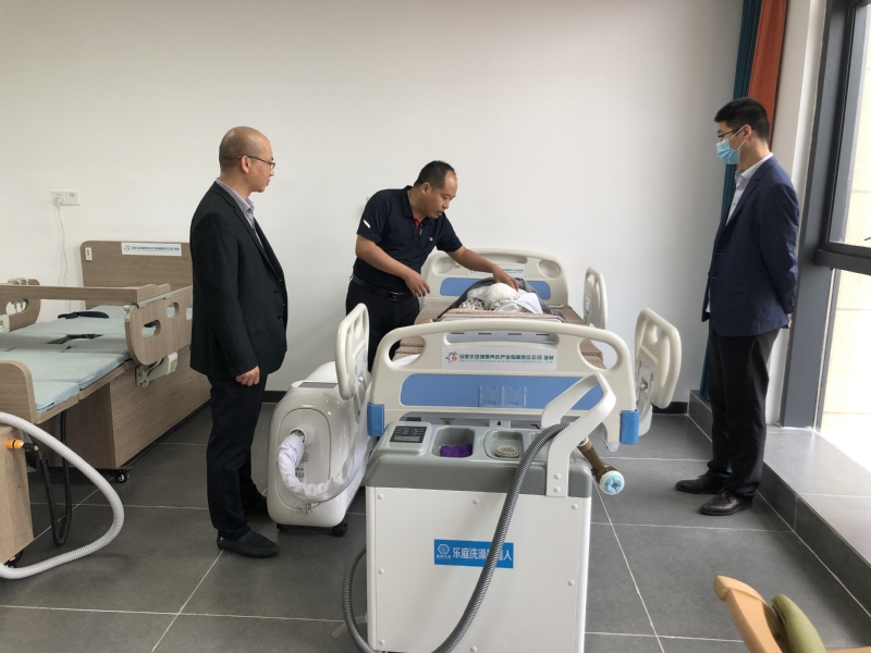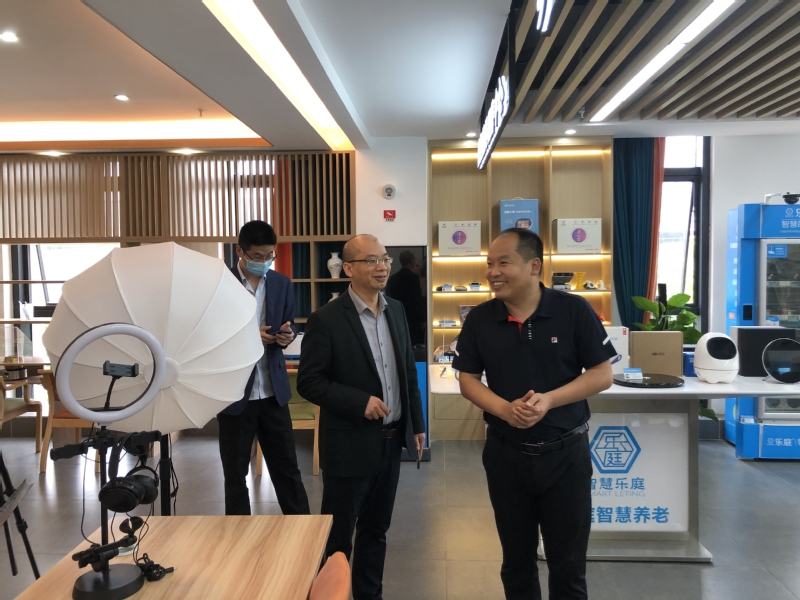 王茂光对公管学院一行表示热烈欢迎,并带领大家参观了公司,详细介绍了智慧养老、居家养老的一些新产品、新服务和智慧管理系统。黄佳豪对安徽乐庭健康科技产业集团所取得的巨大飞跃表示高度赞赏,并详细介绍了学院近年来的发展。随后双方就课题合作、勤工助学、实习就业、支部活动、社会捐赠等众多方面进行了深入磋商,共同期待双方在未来合作中发挥自身优势,实现合作共赢。