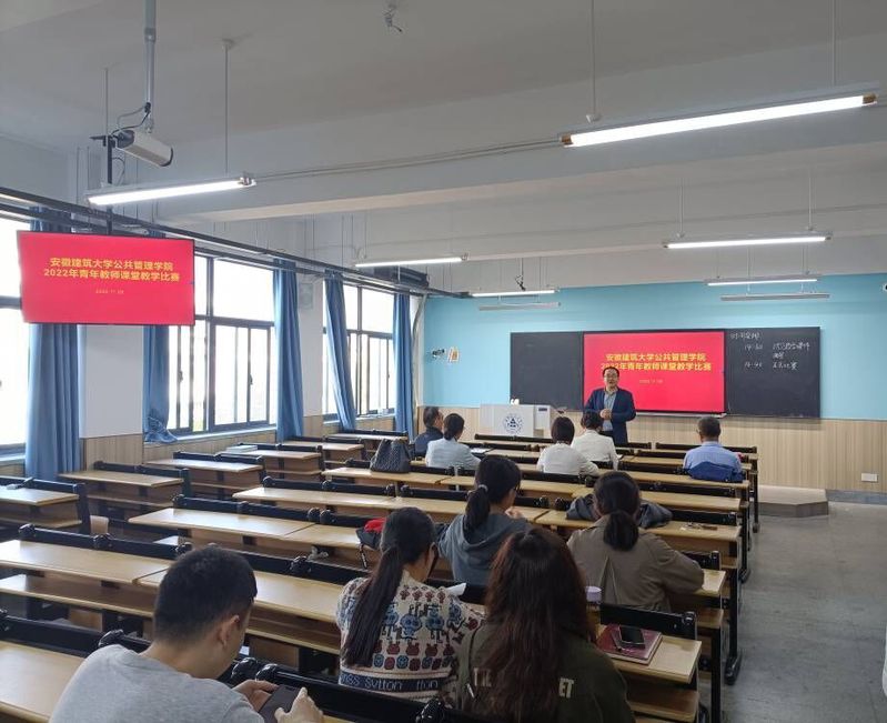 本网讯  为持续加强师德师风建设、锤炼青年教师教学基本功,公管学院2022年11月9日在F512智慧教室组织开展青年教师课堂教学比赛。比赛邀请合肥工业大学于宝证教授、安徽医科大学李菲菲教授、beats365督导组李齐全教授和许海燕教授、学院组织员李道先等教学专家担任评委,学院副院长连瑞瑞主持会议,二十多位青年教师参加活动。