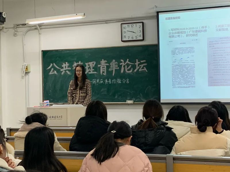 本网讯 为进一步提升研究生的论文写作水平,扎实论文写作基础,激发研究生的写作热情,切实做好研究生的科研工作,11月30日下午,公管学院于北校区F214举办了公共管理青年论坛第3期——朋辈交流:国奖获得者经验分享。论坛邀请了学院本年度国家奖学金获得者孙悦、伍圆圆进行论文写作心得和写作思路的分享。论坛由研究生辅导员王芃主持,公管学院2021级、2022级研究生参加。