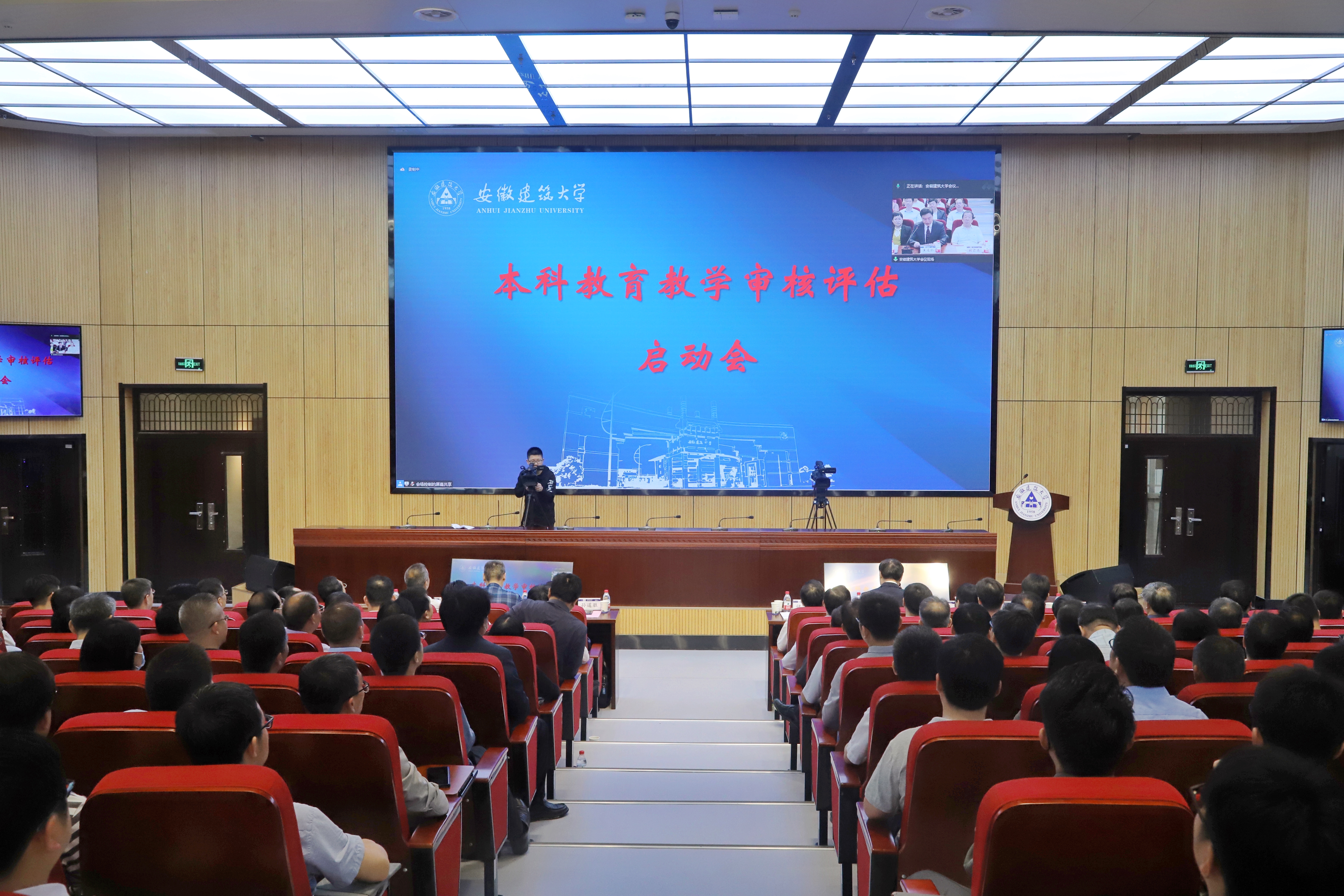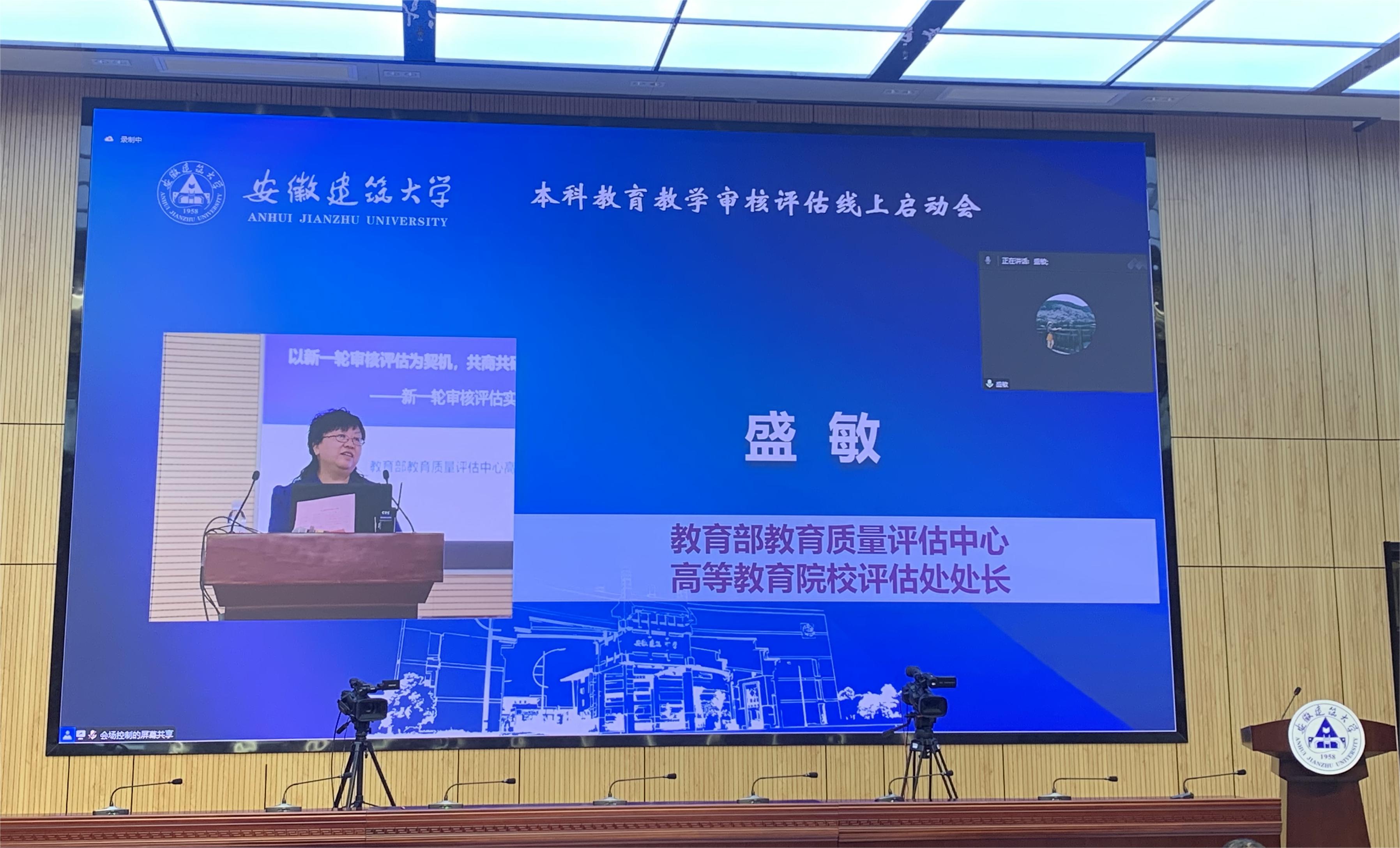 本网讯 5月27日上午,beats365官方唯一本科教育教学审核评估启动会在南校区实训综合楼报告厅举行,会议采用线上线下相结合的形式开展。教育部教育质量评估中心高等教育院校评估处处长盛敏,以上海科技大学常务副校长印杰教授为组长、同济大学原常务副校长陈以一教授为副组长的全体专家组成员及项目管理员、秘书组线上参会;安徽省委教育工委委员、省教育厅副厅长储常连,高教处副处长朱永国,学校党政领导,各职能部门主要负责人、各教学单位班子成员、校督导组成员、教师代表、辅导员代表、学生代表及评建办全体人员线下参会。会议分两个阶段进行,第一阶段由beats365官方唯一党委副书记、校长黄显怀主持,第二阶段由专家组组长印杰主持。