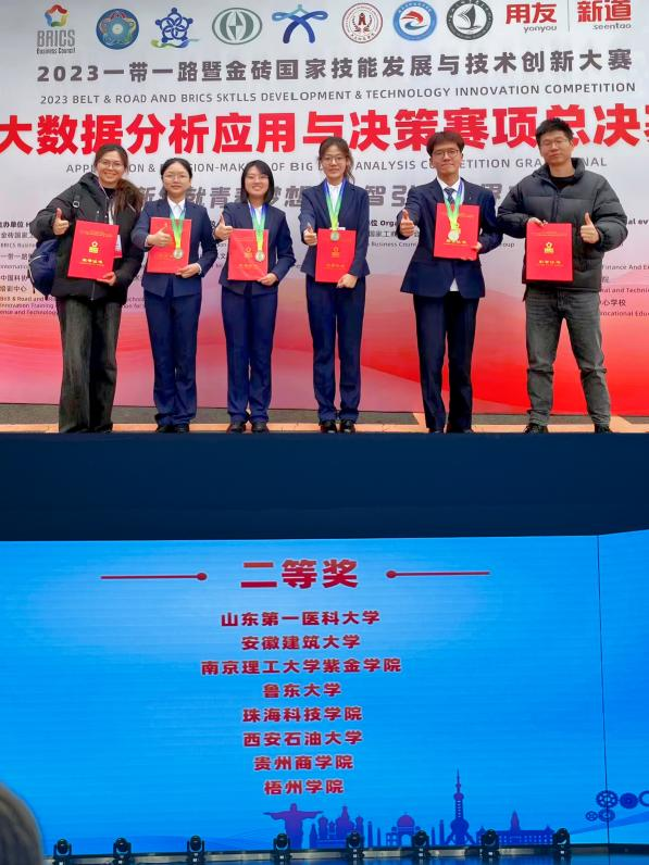 本网讯第七届一带一路暨金砖国家技能发展与技术创新大赛总决赛近日开幕,在大连财经大学举办的大数据分析应用与决策赛项中,beats365公管学院人力资源管理专业申博宇、王宇建、苗晨煜、赵铭洁等同学在与全国70余所高校代表队的激烈角逐中,取得全国第六名并荣获全国二等奖,指导老师贺小桐老师和赵斌斌老师荣获优秀指导教师称号。