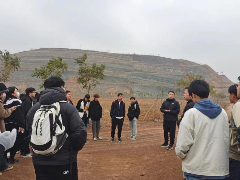 首先,土管系师生来到凤阳县光子岭矿山生态修复项目现场,通过实地参观和提问,同学们对生态修复的过程及环境保护的重要性有了更深入的认识。