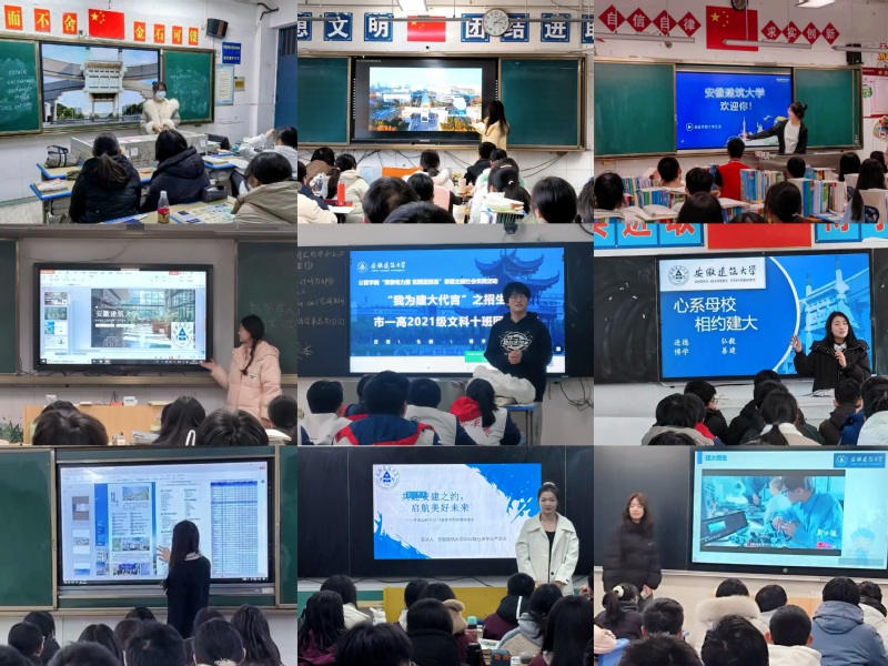 聚是一团火,散是满天星。“建大代言人”在庐江中学、芜湖一中、淮南二中、滁州中学、淮北一中、蚌埠二中等省内名校,衡水枣强中学、杭州第三高级中学、商丘市第一高级中学、平顶山四中和浮山中学等省外高中,向高中生广撒憧憬象牙塔的星火。