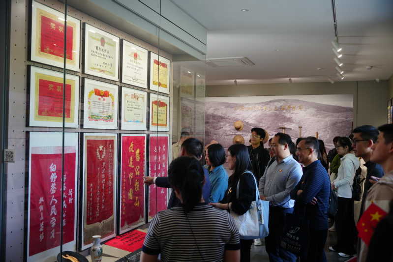 随后,不知不觉间,师生党员沉浸在那似火年代的红色记忆中,沿着百年党史长廊,重温了中国共产党人用智慧和生命开天辟地、救亡兴国、继往开来、民族复兴的光辉历程;师生党员走过新华台,瞻仰精神堡垒五角星,接受深刻的精神洗礼;拾级而上,一行人沿着登山步道抵达青岗岭上的“九·一六”茶园,三月的茶园茶树郁郁葱葱、茶香怡人,台阶旁的映山红、杜鹃花争奇斗艳。身处茶园中大家无不为舒茶人民愚公移山般的钢铁毅力、敢为人先的拼搏精神和锐意进取的创业精神所折服,党员同志们深刻体会到将党旗插到茶垅间的深刻内涵,以亲身实践感悟党史光辉。