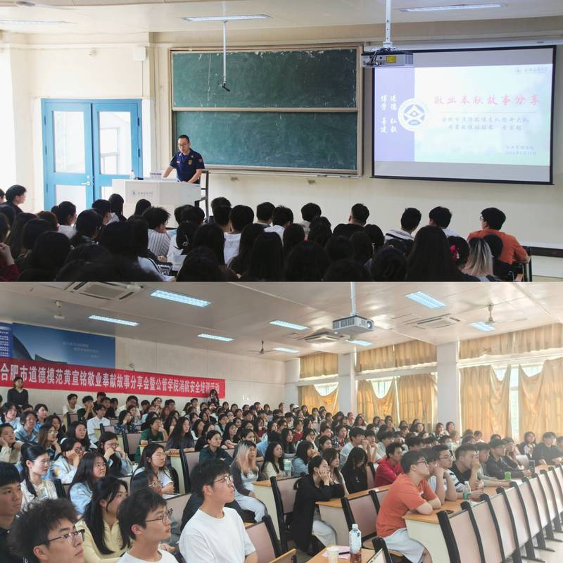 本网讯 为贯彻落实总体国家安全观,进一步加强校园消防安全教育,提高师生员工防灾减灾安全意识,增强防灾减灾应对和逃生本领,近日公管学院开展敬业故事分享会暨消防安全演练活动。活动特别邀请合肥市道德模范、合肥市岗位学雷锋标兵合肥消防支队经开大队丹霞站站长黄宣铭开展宣讲学院各年级学生与辅导员共300余人参加活动活动得到合肥市消防支队包河大队宿松路消防救援站和校保卫处、后勤管理处大力支持。
