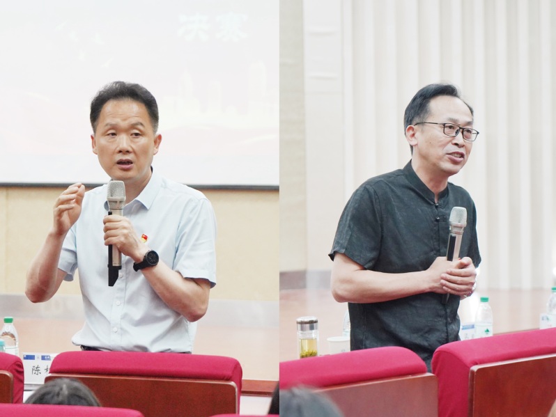 比赛结束后,学院人社系管理学教授范海洲、陈松林依次作指导点评。范海洲教授详细分析了“红色管理”的概念,希望同学们继续深入挖掘红色故事中的管理内涵,将“红色”和“管理”更巧妙地加以融合。陈松林教授重点考量选手们的破题和故事要素,肯定了选手们的精心准备,鼓励同学们在今后的学习和研究过程中将红色故事和管理理念结合起来,做到故事理念化、理念故事化。两位教授的点评让选手们获益匪浅。经过评审,大赛最终决出一等奖1名、二等奖2名、三等奖3、优秀奖4名,现场评委嘉宾依次为获奖选手颁发荣誉证书。
