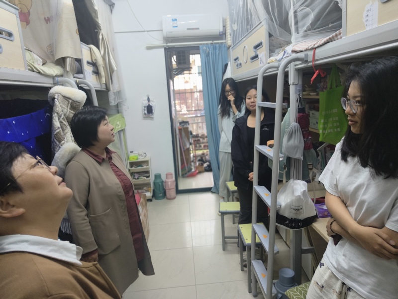 李早一行实地走访了徽韵楼艺术学院7507教室,亲切询问了同学们的课程进度,了解指导教师每周指导学生的次数。深入8号楼、11号楼和12号楼学生宿舍,仔细考察了洗衣房、淋浴间,仔细询问学生宿舍生活情况、作息规律以及课外活动的情况,并嘱咐同学们注意用电安全,不使用违规电器,及时排查安全隐患。