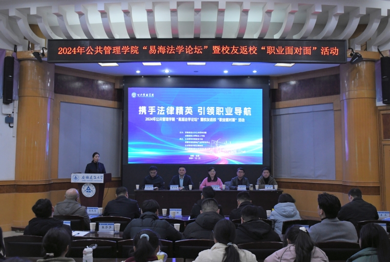 本网讯 携手法律精英,引领职业导航。为促进校友与母校之间的交流联络,推动校友工作全面发展,让在校学生能够近距离聆听校友的成功故事和宝贵经验,12月21日,公管学院以“易海法学论坛”暨校友返校“职业面对面”为主题,邀请来自祖国各地的校友代表莅临参会,共同回顾建大岁月和成长之路,为推动学院高质量发展凝聚力量。