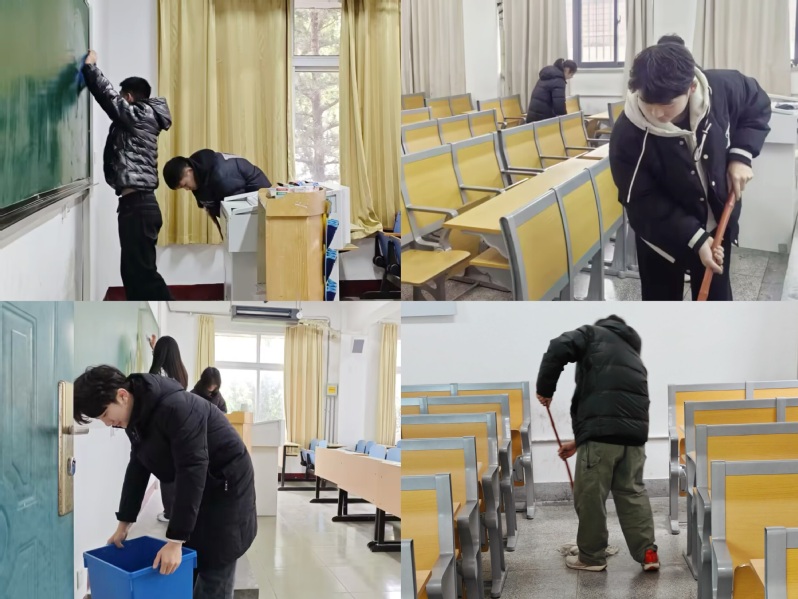 活动开始前,辅导员老师对北校区教学楼所有教室进行任务划分和学生分组,带领大家逐一进行卫生清洁,并根据制定的卫生评分标准进行检查验收。活动过程中,同学们拿起扫帚、抹布等工具,积极投入到教室环境的整治和美化中。他们捡拾垃圾、清理杂物,不怕脏、不喊累,对教室内的墙面污点、桌椅灰尘、讲台黑板以及卫生死角进行仔细清扫。大家分工明确、团结协作,用实际行动践行无私奉献的雷锋精神,为同学们创造干净整洁的学习环境的同时,也真切体会到了学校后勤叔叔、阿姨们劳动的辛苦。