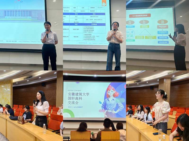 活动特别邀请了国轩高科技术主管麻姗姗、精益主管寇雪、动力设计经理谢丽平、国轩学堂产业学院经理张一兰、行政专员张晶晶、培训资深师方元共6位国讯高科的优秀经理和主管进行经验分享,其分别就锂离子电池生产应用简介、行业人才需求、HR职业发展路径和国轩高科人才培养体系等主题与同学们进行了深入交流。在互动环节,同学们积极提问,现场气氛热烈。