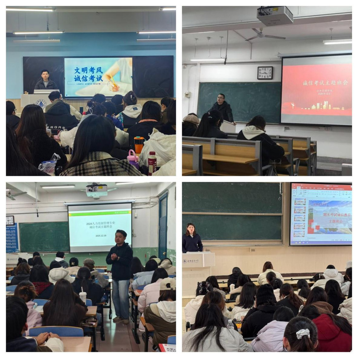 本网讯 为进一步加强校风学风建设,引导学生树立诚信考试理念,增强规矩意识与责任担当,近日,公共管理学院组织开展“诚信应考 不负韶华”期末诚信教育系列活动,通过主题班会、诚信教育考试、现场观摩监控室等丰富形式,全方位筑牢学子诚信考试的防线。