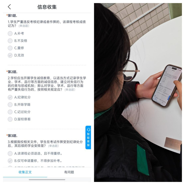 以考促学验成效,强化纪律规则认知深度。为检验诚信教育实效,学院面向大一至大三本科生开展诚信教育成效测试,内容涵盖考试纪律规定、诚信应考准则等核心知识。通过“以考促学”的方式,助力学生巩固诚信考试相关知识,进一步强化纪律意识与规则观念。测试过程中,学生自觉遵守考场要求、认真作答,充分展现出良好的学习态度与诚信素养。考后,各班级精准梳理学生高频错误知识点,开展针对性讲解辅导,切实加深学生对诚信考试规则的理解与把握。