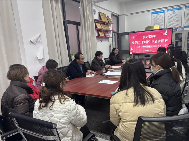 本网讯 为深入学习贯彻党的二十届四中全会精神,深刻领会新时代推进国家治理体系和治理能力现代化的核心要义,12月24日下午,学院党委副书记(主持工作)汤娜深入人社系教师党支部宣讲党的二十届四中全会精神,活动由人社系教师党支部书记连瑞瑞主持。本次宣讲会旨在引导全体教师党员统一思想、凝聚共识,将全会精神深度融入教学、科研与社会服务全过程。