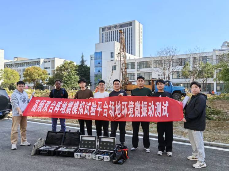 本网讯 3月25日下午,建筑健康监测与灾害预防技术国家地方联合工程实验室组织开展了“高频双台阵地震模拟试验平台场地环境微振动测试”。本次试验由周宇副教授组织完成,旨在精确测得试验平台场地的环境振动特性,为后续试验平台建设与运维提供基础数据。