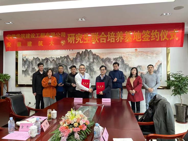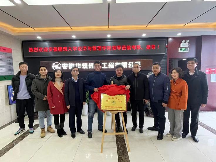 本网讯 2月25日,经管学院党政负责人赴安徽华筑建设工程有限公司,开展访企拓岗促就业调研和研究生联合培养基地建设签约等活动。安徽华筑建设工程有限公司总经理李耀军和常务副总、校友张静参加座谈会和签约仪式。