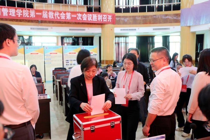 大会第二次全体会议上,与会代表表决通过了《关于学院工作报告的决议(草案)》《关于工会工作报告的决议(草案)》《经济与管理学院第一届教职工代表大会执行委员会选举办法(草案)》及总监票人、监票人、计票人建议名单,选举产生了学院第一届教职工代表大会执委会委员。