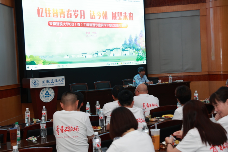 下午两点在建树楼3楼学术报告厅,一场以“忆往昔青春岁月,话今朝展望未来”为主题的班会将同学们的记忆又拉回了二十年前,本次班会由时任00(春)工程管理专业的辅导员陈少东老师主持。陈老师以满腔的热情欢迎校友们的归来,他深情回顾了校友们在校时的青春风采,对大家在各自领域取得的卓越成就表示高度赞赏,希望他们在未来的生活和工作中厚植家国情怀,心怀感恩之心,不断追求更高的目标,让生命之树因不懈追求而更加枝繁叶茂。