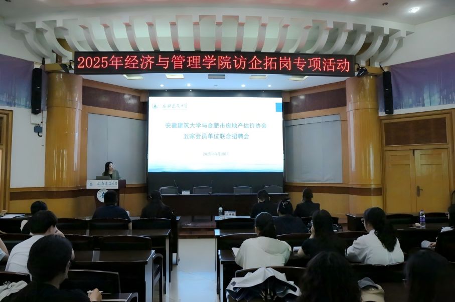 本网讯 为进一步拓展就业渠道,推动学院毕业生实现高质量就业,4月28日,应经管学院邀请,合肥市房地产估价协会携5家会员企业在建树楼三楼报告厅举办专场招聘宣讲会,学院近70名2025届毕业生参会。