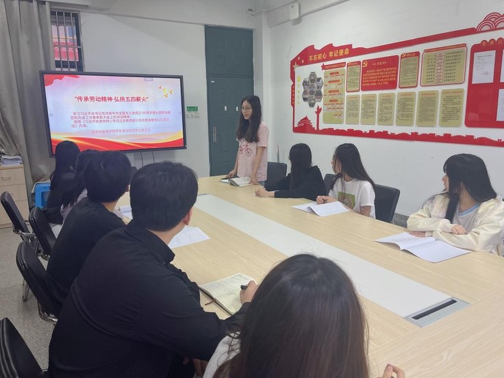 本网讯 为传承劳动精神,弘扬五四精神,激励青年党员勇担时代使命,5月8日,经济与管理学院学生第四党支部组织全体党员开展了“传承劳动精神,弘扬五四薪火”主题党日活动,活动通过专题学习与交流研讨相结合的形式,引导支部党员汲取奋进力量。