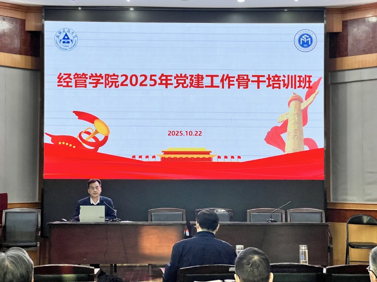本网讯 10月22日下午,经管学院于建树楼三楼报告厅举办《习近平谈治国理政》第五卷专题辅导报告会,邀请安徽省社科联秘书长、安徽省委讲师团理论宣讲专家库成员韩修良作专题辅导报告。学院领导班子成员、全院教职工、党建工作骨干及学生党员代表共150余人参加了报告会。报告会由学院党委书记潘和平主持。