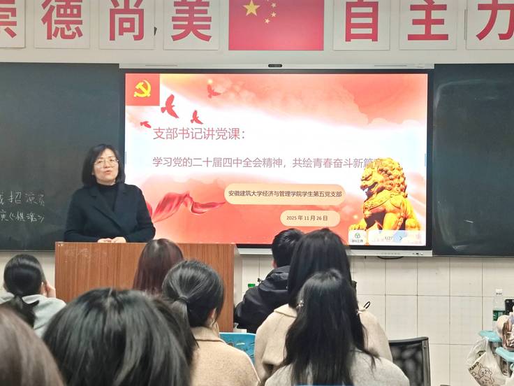 党支部书记宁宁老师以“学习党的二十届四中全会精神,共绘青春奋斗新篇章”为题,为支部党员和高一(11)班同学们讲授了一堂生动的主题党课。党课紧扣时代脉搏,阐释我党伟大成就背后的思想内涵与价值追求,引导同学们深刻认识个人成长与国家发展之间的内在联系,激励大家将个人理想融入国家发展伟业,以奋斗姿态书写无悔青春。