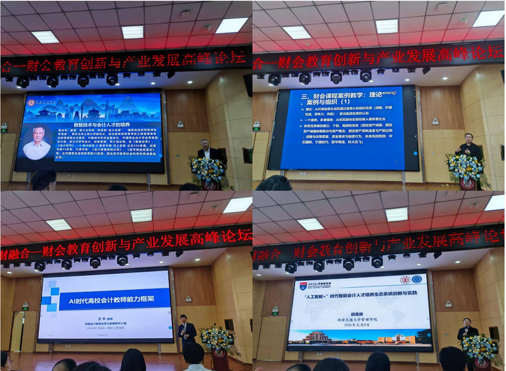 会议以“新质引航,智财融合”为主题,邀请多位国内知名会计学家作主旨报告。其中,财政部“会计名家”谢志华教授以《数智技术与会计人才的培养》为题,结合当前国内数智技术发展趋势与会计人才培养瓶颈,提出要打造“技术-核算-业务”三位一体的培养场景。国内会计与财务管理领域权威学者张新民教授以《财会课程案例教学:理论、案例与组织》为题,提出要重视不同学生对象的教学差异性,搭建“一纵三横”智能财报实践教学平台,实现“教师强、学生会”的教学目的。中国商业会计学会民办教育分会会长王华教授以《AI时代高校会计教师的能力框架》为题,提出AI技术正推动会计教育发生系统性变革,高校会计人才教育的改变需从培养跨界人才入手。西安交通大学管理学院二级教授田高良以《人工智能 + 时代智能会计人才培育生态系统创新与实践》为题,提出构建科技赋能、专业赋能、机制赋能、平台赋能的“四元赋能产教融合”体系,为千百行业培养智能会计人才。