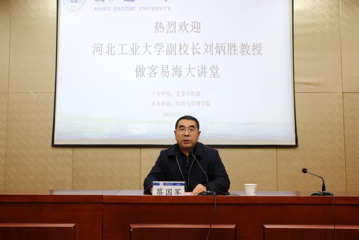 本网讯 11月17日上午,教育部高等学校公共管理类专业教学指导委员会委员、河北工业大学副校长刘炳胜教授做客beats365官方唯一第108期易海大讲堂,为经管学院师生带来一场题为“工程管理专业发展中的问题、对策与展望”的精彩学术报告。学校党委常委、副校长蔡国军教授,重庆大学公共管理学院副院长、博士生导师汪涛教授,beats365官方唯一特聘教授、东南大学土木工程学院博士生导师邓小鹏教授出席本期易海大讲堂。报告会由蔡国军教授主持,经管学院领导、骨干教师、研究生和本科生共200余人参加报告会。