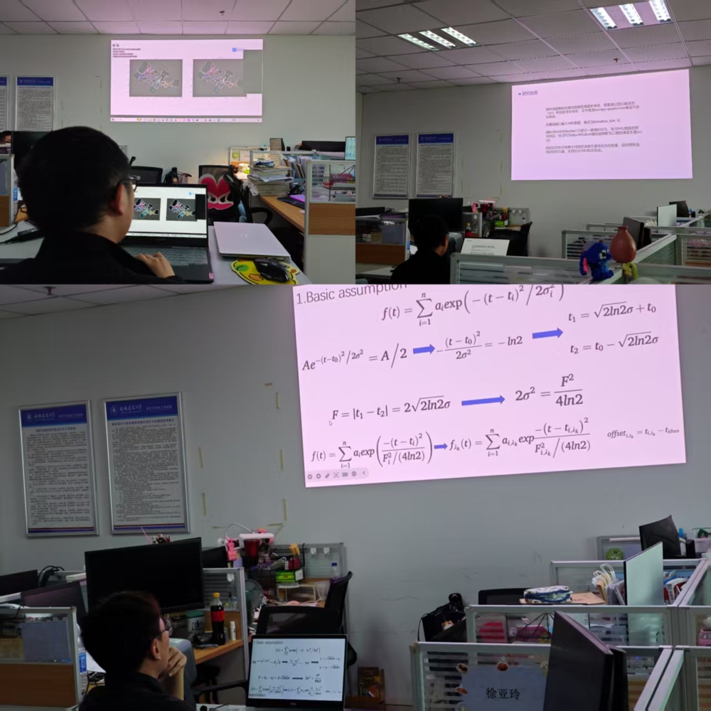 研讨会上,邓林林同学率先作了题为“基于高光谱激光雷达的波形分解研究”的汇报。他详细介绍了两种主流的波形分解方法,一是基于多光谱波形特征提取的分解策略,二是通过对自然目标回波中心位置进行排序并计算中值的改进型波形分析方法。该研究为高光谱激光雷达的精细化探测与数据分析提供了技术支撑。