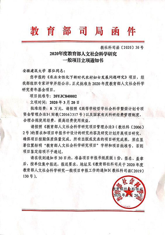 2020年度教育部人文社会科学研究一般项目
