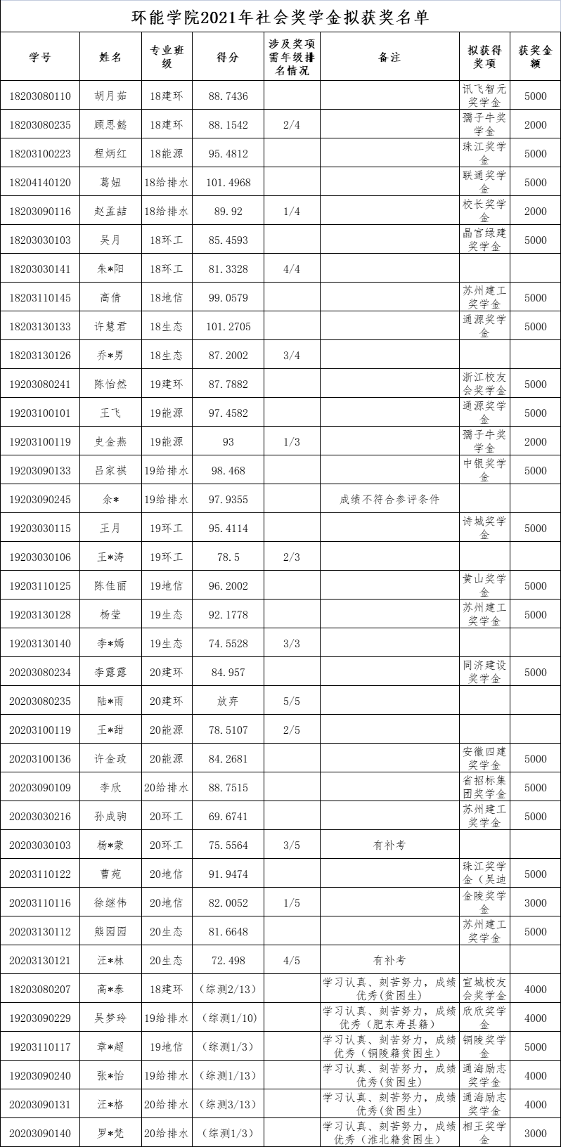 根据《beats365官方唯一社会奖学金管理办法》(校字〔2014〕91号)及相关奖学金评定细则及学校下发计划,经过个人申报,资格审查,班级评议,学院评审委员会讨论、初审,初步确定胡月茹等拟获得2021年社会奖学金。公示时间:2021年12月3日至12月9日。