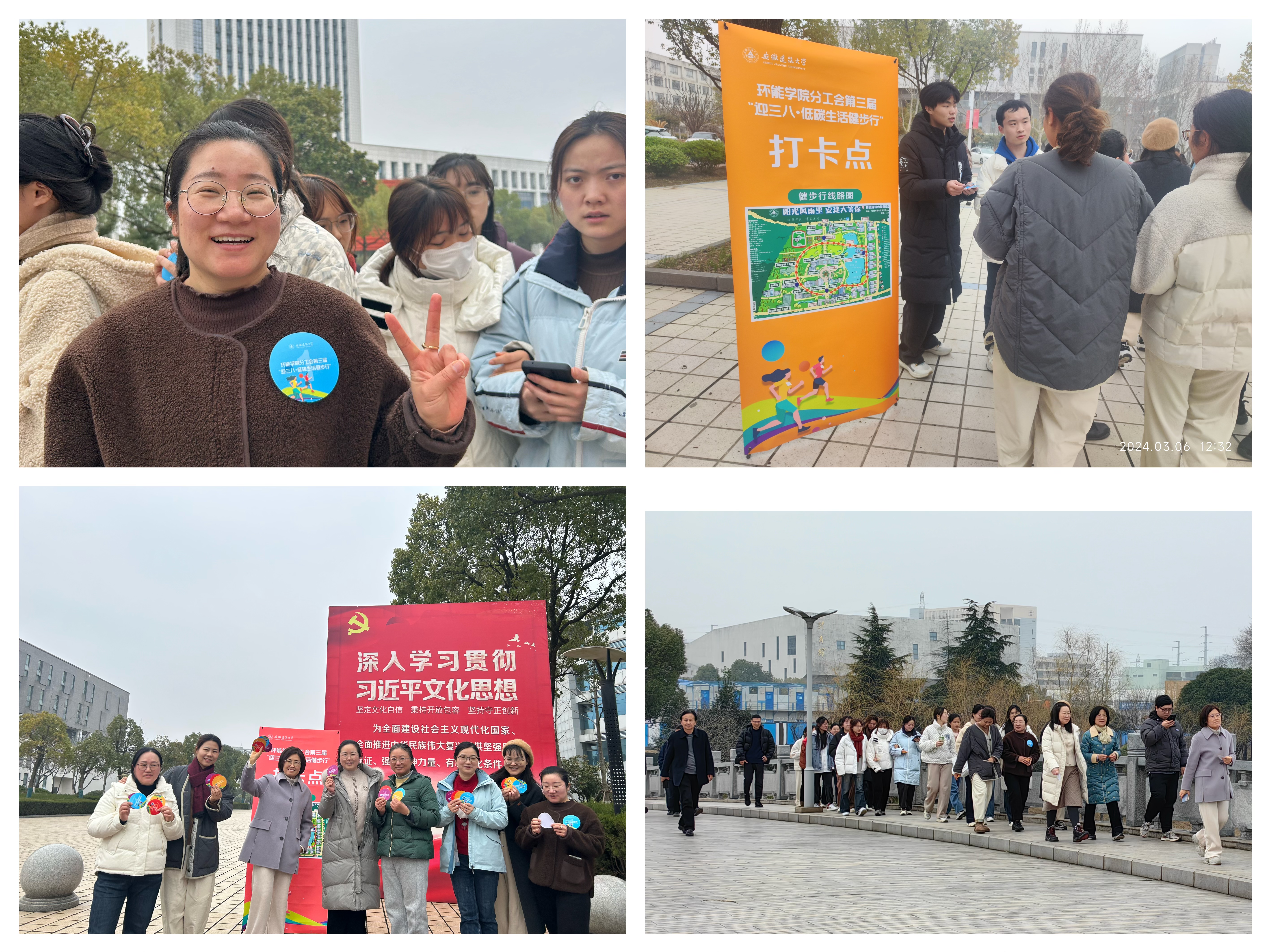 和煦春光里,学院女教职工精神抖擞地开始了“健步走”,本次活动环南校区徒步一圈,共设徽文楼一楼广场、徽学楼北广场、大学生活动中心和南大门4个打卡点打卡。活动过程中也吸引了众多学生参与进来,一路上大家欢声笑语,签到、领券、打卡……享受运动带来的轻松愉悦,为校园里增添了一道充满运动、健康、自信、阳光、团结、靓丽元素的风景线。