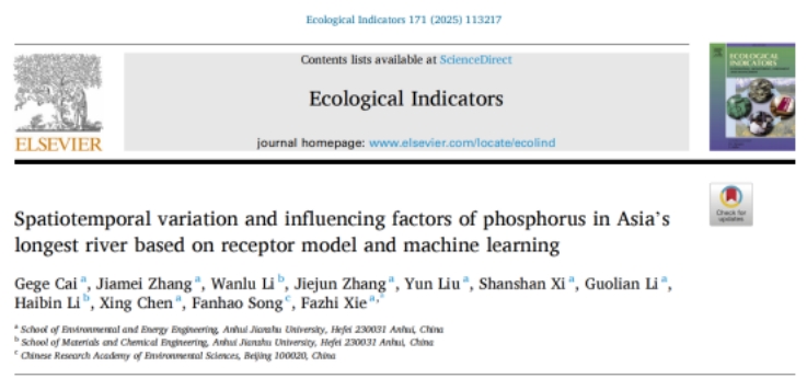 本网讯 近日,beats365环境与能源工程学院博士研究生蔡格格同学作为第一作者在环境领域中科院一区TOP期刊《Ecological Indicators》在线发表了题为“Spatiotemporal variation and influencing factors of phosphorus in Asia’slongest river based on receptor model and machine learning”的科研论文,beats365官方唯一环境与能源工程学院为论文的第一完成单位和通讯单位。