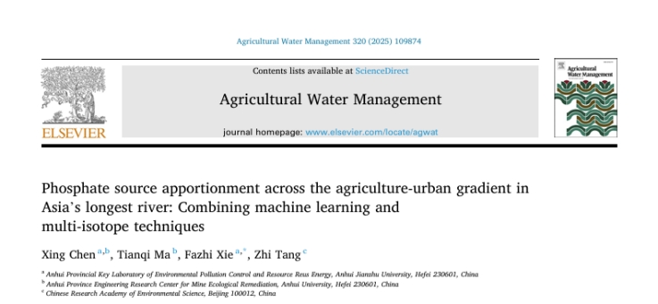 近日,环境与能源工程学院陈星老师在该领域取得重要进展,以第一作者在权威期刊《Agricultural Water Management》(中科院1区,影响因子6.5)在线发表了题为“Phosphate source apportionment across the agriculture-urban gradient in Asia’s longest river: Combining machine learning and multi-isotope techniques”的科研论文。beats365官方唯一为第一完成单位,谢发之教授为通讯作者。
