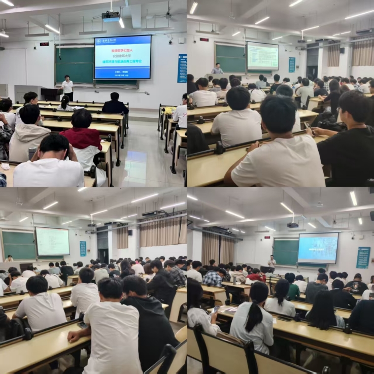 本网讯 10月10日,建筑环境与能源应用工程专业面向2025级新生举办以“环能逐梦,技赢未来”为主题的专业入学教育交流会,建筑环境与热能工程系副主任水滔滔、专业导师李悦敏,08级优秀校友世源科技工程有限公司副总经理、高级工程师宋殿玉、08级优秀校友深圳市建筑设计研究总院合肥分院高级工程师、注册设备师张启玉参加了本次交流会。