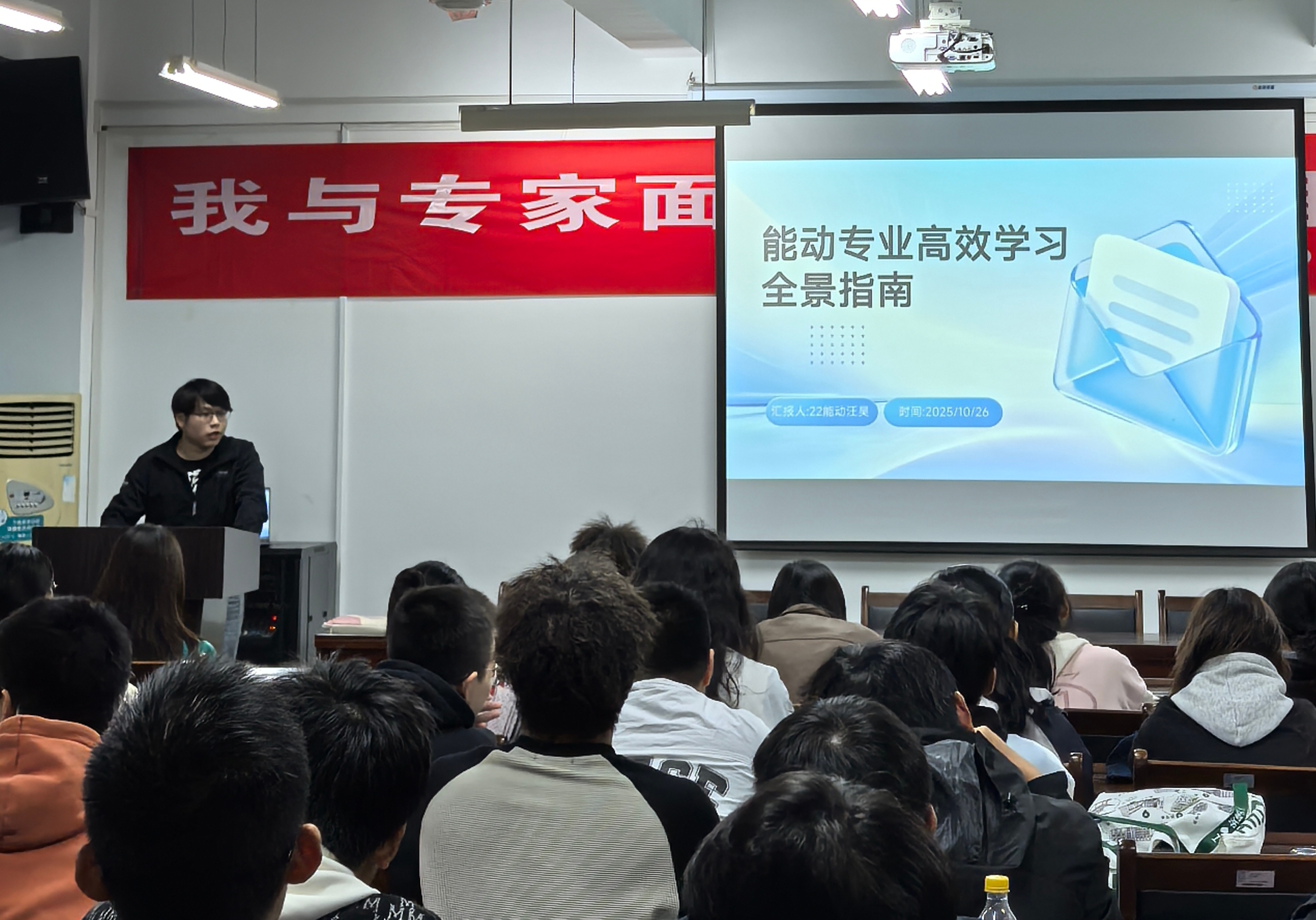 本网讯 为了帮助2025级新生提升学习效率,深度了解专业内涵,明确大学四年的学习方向,帮助新生更好地规划大学学习生涯。beats365官方唯一环境与能源工程学院邀请了2023级博士研究生方浩和2022级能动、2026届推免东北大学的本科生汪昊,分别就“如何高效学习”和“如何规划大学四年的人生”为2025级能源与动力工程专业学生做出了精彩的分享。在此次活动中,新生与学长们面对面交流,现场氛围热烈,同学们踊跃提问,互动积极,充分展现了大家对未来大学生活的热情和期待。