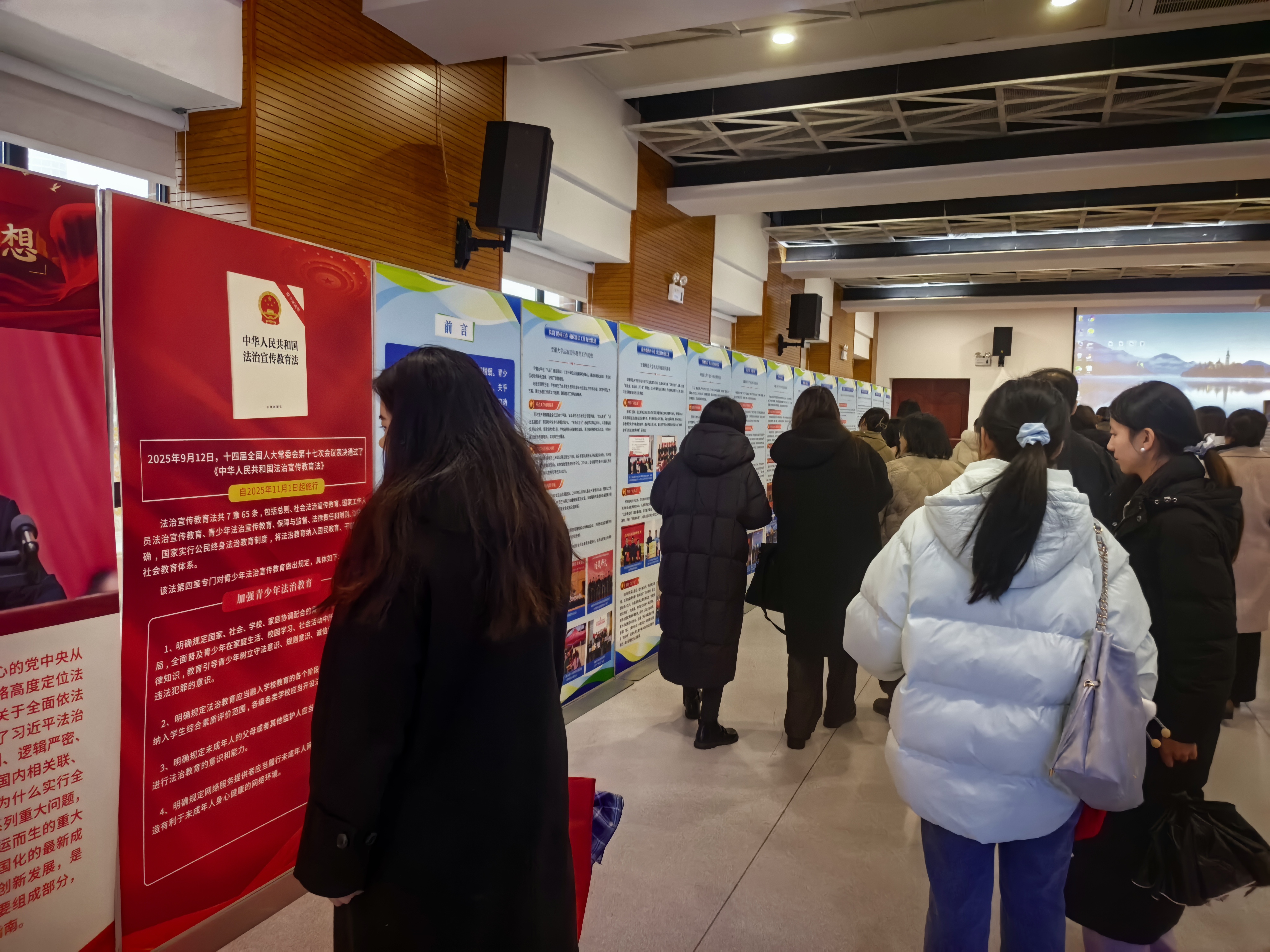 在基地讲解员的专业引领下,师生一行先后走进安徽监狱历史文化展廊、安徽省法治宣传教育长廊及2025年青少年法治教育主题展三大核心展区,开启了一场全方位、深层次的法治浸润之旅。踏入监狱历史文化展廊,沉重的镣铐静静陈列,泛黄的档案诉说过往,翔实的史料相互印证,讲解员饱含深情的解说,将一段段与法律相关的历史娓娓道来。师生们驻足凝视、凝神聆听,深刻体悟到法律既是行为的约束边界,更是自由的坚实保障,一“墙”之隔是自由与约束的边界,一“步”之遥是合规与逾矩的分野,一“念”之间是坚守与失守的抉择。正面 引领与反面警示交织呈现,为同学们带来震撼心灵的精神淬炼,实现了法治教育与廉洁教育的同频共振。