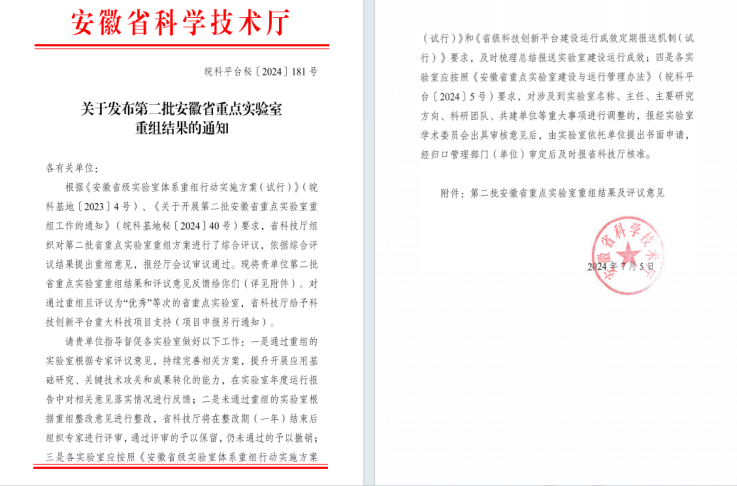 科研平台建设实现新跨越。学院完成环境污染控制与资源化安徽省重点实验室重组并以“优秀”等次通过验收,新增工业园区污染治理与资源化利用安徽省联合共建学科重点实验室、安徽省生态文明研究院等5个省部级科研平台,构建起布局合理、功能完善的科研创新平台体系,为科研工作开展提供坚实支撑。
