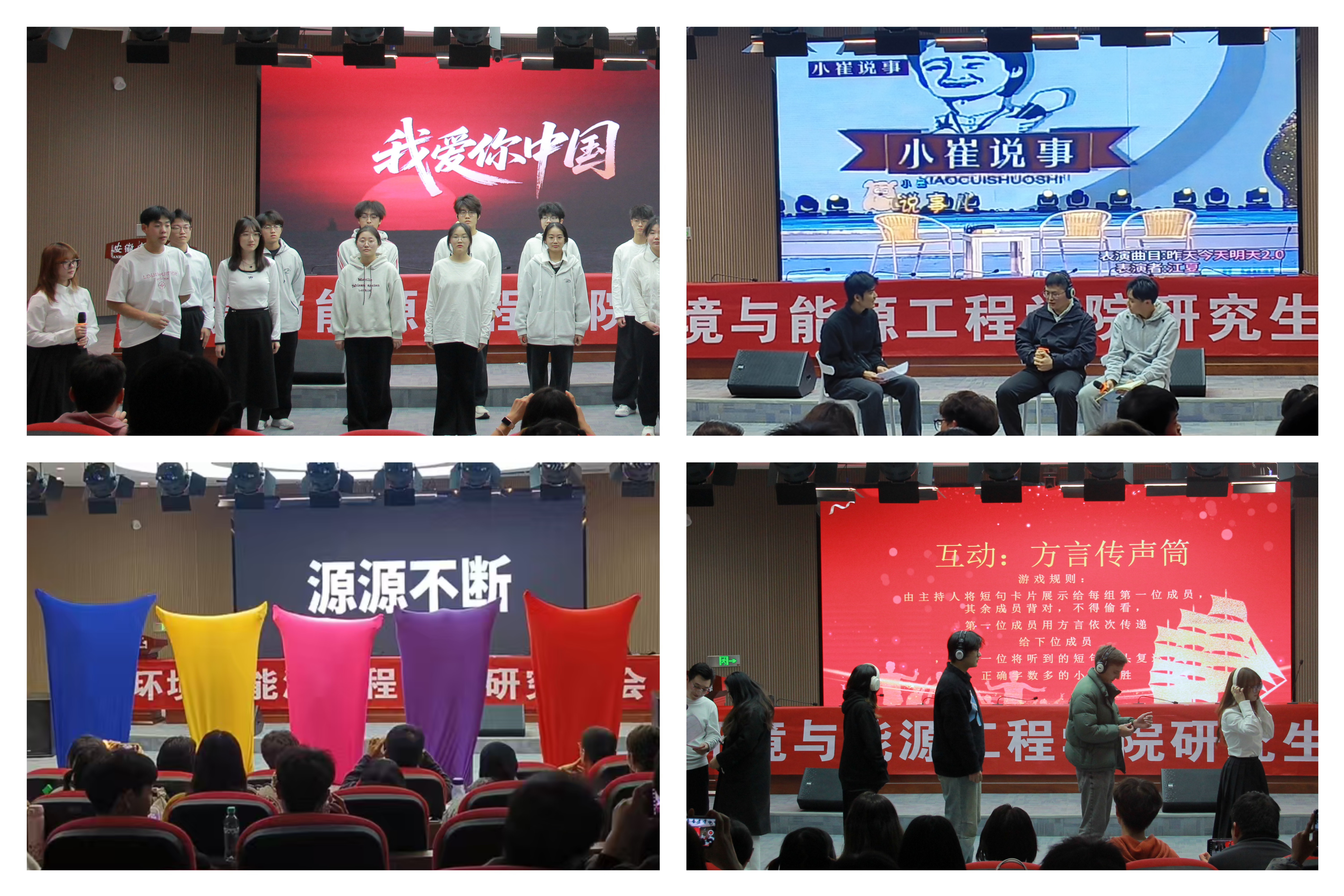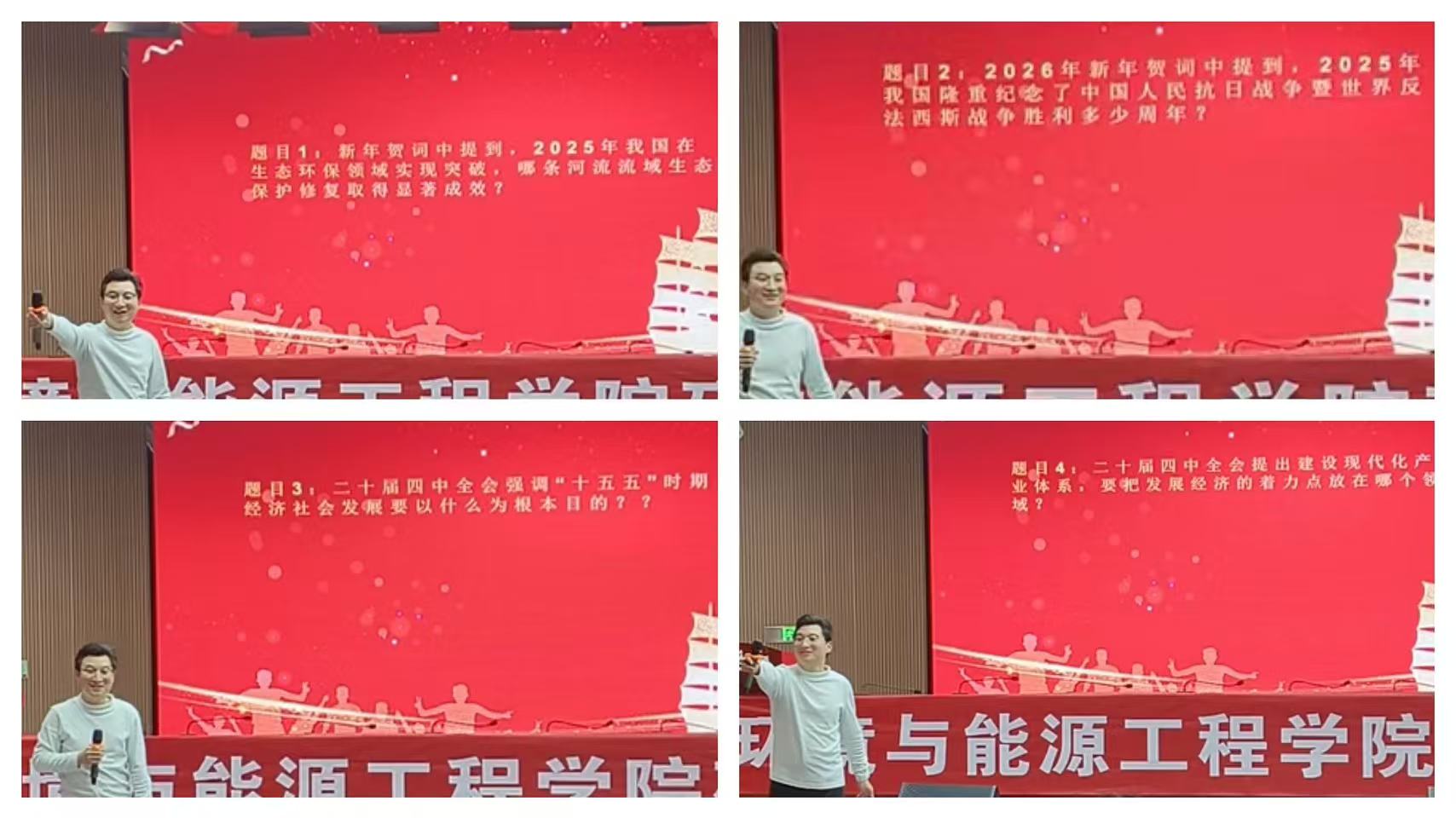 展演以“中国红”为主线,将红色教育融入美育实践,打造了一堂沉浸式价值引领课堂。红色知识“你问我答”环节,围绕传统民俗红色元素、革命历史经典故事展开,学子们在问答互动中重温红色记忆、传承红色基因;展演尾声,本科生代表合唱《我爱你中国》,歌声铿锵、情怀滚烫,抒发了环能学子对祖国的赤诚热爱与使命担当。活动紧扣“十五五”规划精神,引导青年学子将个人理想融入国家发展大局,切实把立德树人根本任务贯穿美育全过程,彰显学院以红色文化铸魂、培育时代新人的坚定追求。