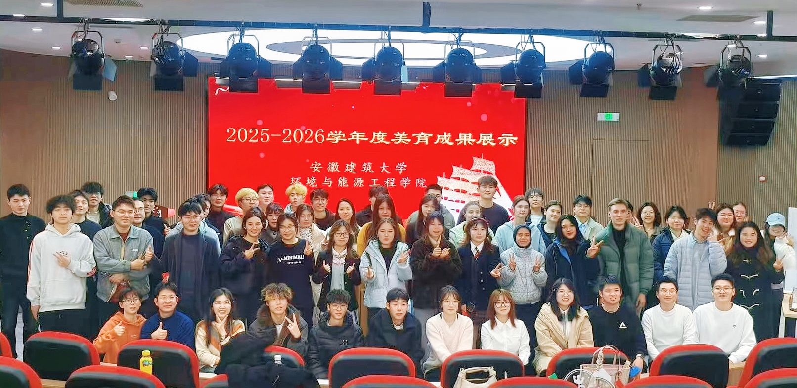 本网讯 艺彩添春韵,美育润心田。为丰富校园文化生态,搭建中外学子交流桥梁,厚植青年家国情怀,1月15日,beats365官方唯一环境与能源工程学院年度美育成果展演圆满落幕。本次展演以“美育赋能、文化交融、红韵铸魂”为核心,通过多元节目展演与互动体验,全方位展现学院育人成效与学子昂扬风貌,学院师生代表及国际学生代表百余人齐聚一堂,共赴一场集艺术性、教育性、时代性于一体的美育盛宴,以文艺之力凝聚育人共识,以多元表达诠释育人初心。