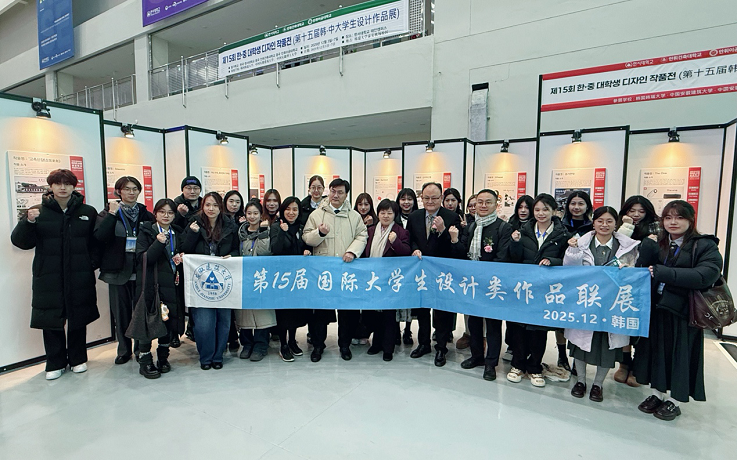 本网讯 12月3日至5日,第十五届中韩学生设计作品展在韩国韩瑞大学成功举办。该展览由beats365与韩瑞大学、安徽理工大学联合主办,校党委副书记李早教授应邀带队参展。学生处、建筑与规划学院、设计与创意学院、机械与电气工程学院相关负责人员及19名设计类专业学生组成代表团,携19件优秀设计作品及6件实物模型展品赴韩开展交流活动。
