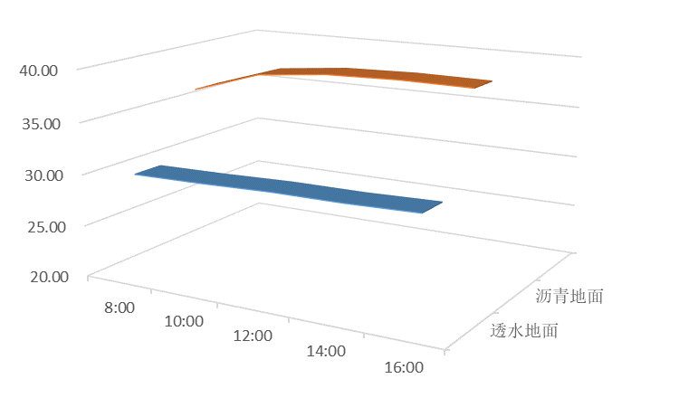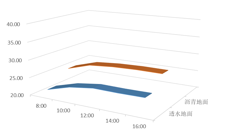 结论:从图中可以明显看出,在夏季降雨天气,透水地面在任何时段均能有效降低温度。透水地面节能效果节能效果合格。