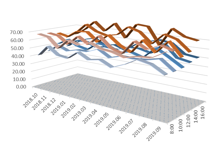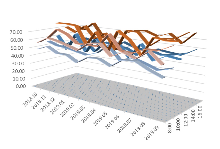 研究内容与方法:工程采用了:1、超宽绿化带隔声减噪;2、围护结构中空隔声玻璃隔声减噪;3、墙体隔声减噪。为了检验隔声减噪效果,购置分贝仪,从项目开始月2018年10月,把一天分为5个时区段,两个小时进行一次监测读数,于建筑内外至少8个以上的不同地点进行读数。每月1次读数的工作,连续读数12个月(每次读数选择不同的星期工作日,比如第1个月于第一个星期的星期一读数,第2个月于第一个星期的星期二读数,以此类推),读数点尽可能分布全区域,避免由于区域造成的误差,并做出室内外对比,最后做出曲线图进行综合声环境监测结果判断设计效果是否有效。