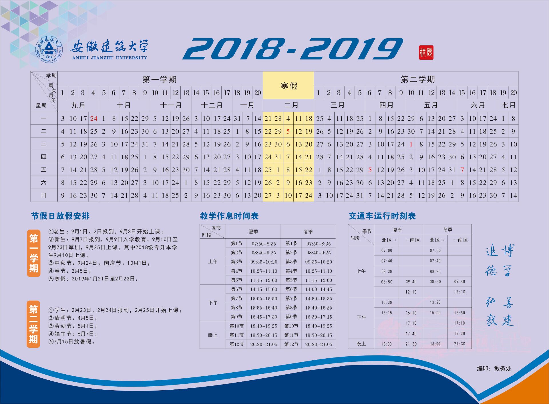2018-2019学年校历