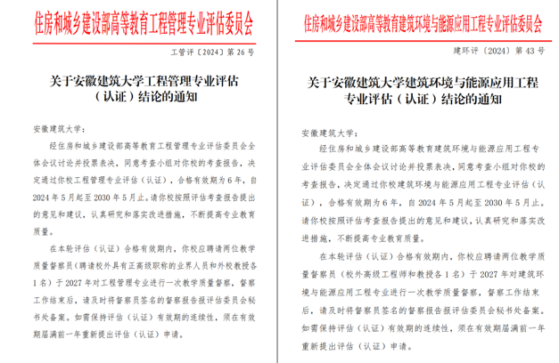 强效推进工程教育认证与评估,将“以学生为中心、产出导向、持续改进”理念贯穿到人才培养全过程、各环节。建筑环境与能源应用工程、工程管理2个专业均以“有效期6年”的结论通过住建部专业评估(认证)。
