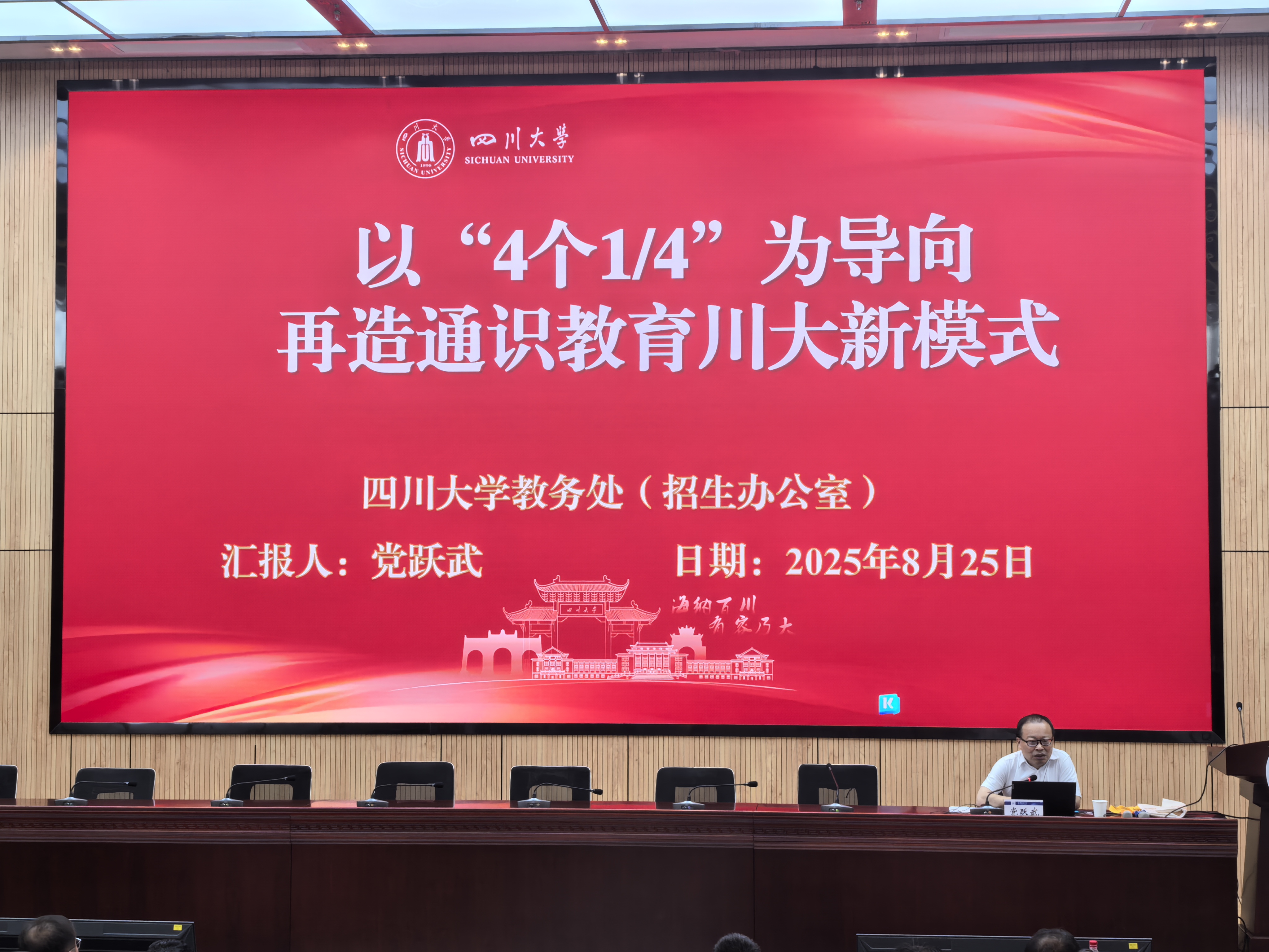 党跃武教授从四川大学的历史沿革与一流本科人才培养成果出发,系统阐释了以川大特色通识教育为依托的宽口径专业培养体系。他强调通过融合式教育与学习,推进“AI赋能、创新使能、改革善能”,以“4个1/4”为引导重构人才培养方案,打造通识教育新范式。此外,党跃武教授还就当前通识教育存在的普遍问题及应对之道进行了分析探讨。