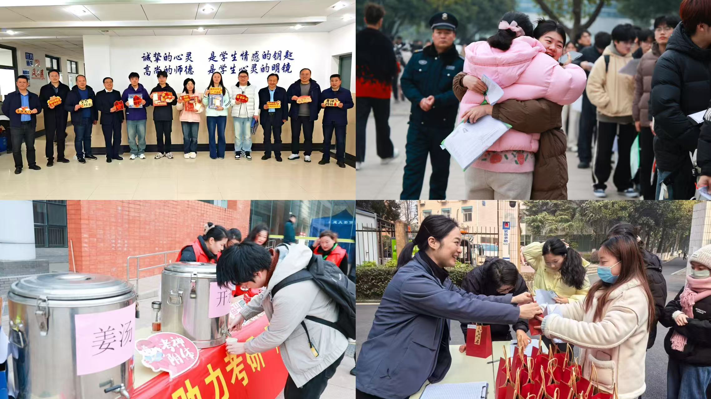 考试准备与正式实施期间,全体校领导多次带队深入标准化考场、指挥大厅、保密室等重点场所指导研考工作,实地检查设施运行、流程落实情况,看望慰问一线考务人员与备考学子。学校强化人员培训与风险防控,组织全体涉考人员开展“线上+线下”专题培训并实现考核全达标,邀请研究生院讲解自命题工作注意事项,确保监考、考务人员懂法知规、履职尽责。后勤基建处、保卫处、信网中心等部门开展考试环境综合治理专项行动,校领导带队进行多轮综合演练与安全督查,全面排查化解风险隐患。考生管理与宣传育人有机融合,以温馨提示、诚信考试教育等方式,及时回应考生关切,清晰解读考试安排与注意事项,有效减少考生忘带、误带材料等情况的发生。考试期间,学校暖心服务系列活动获安徽省教育招生考试院官微专题报道,校内各单位结合实际开展丰富多样的宣传报道,为考生加油鼓劲,展现学校良好的考风学风教风。