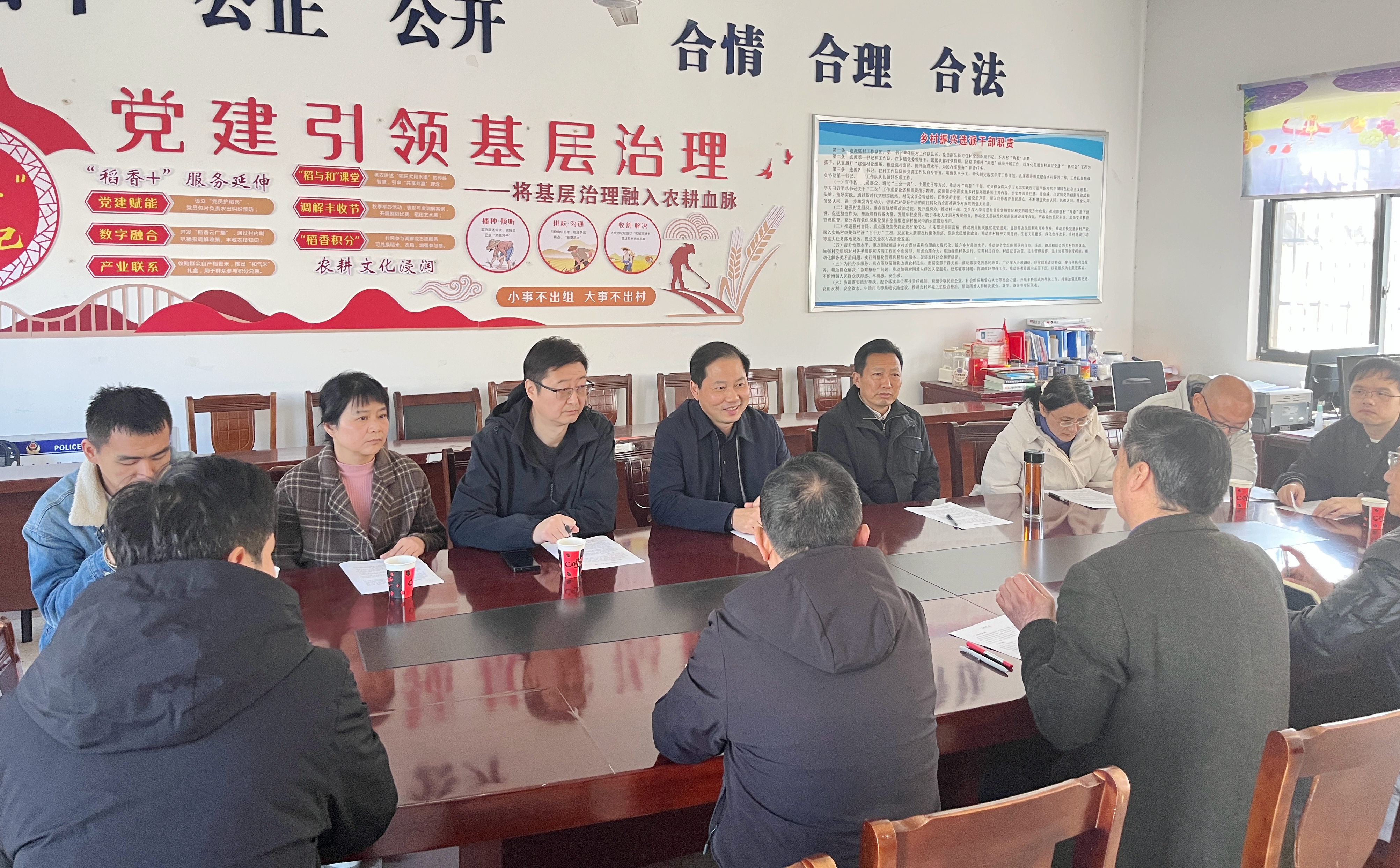 在村会议室,黄多能与驻村工作队、村干部进行座谈交流,听取侯为民作工作汇报,详细了解驻村工作开展情况、汤池村农业产业发展情况及村里急需解决的问题和困难。