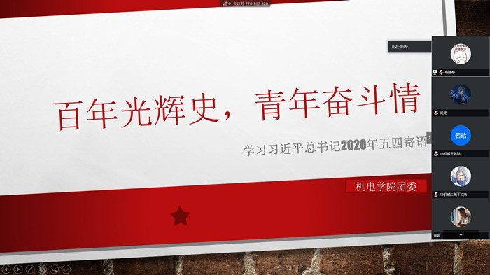 本网讯近日,机电学院开展网上主题团日,组织团员干部深入学习领会习近平总书记五四寄语精神,交流学习体会、砥砺奋进信心